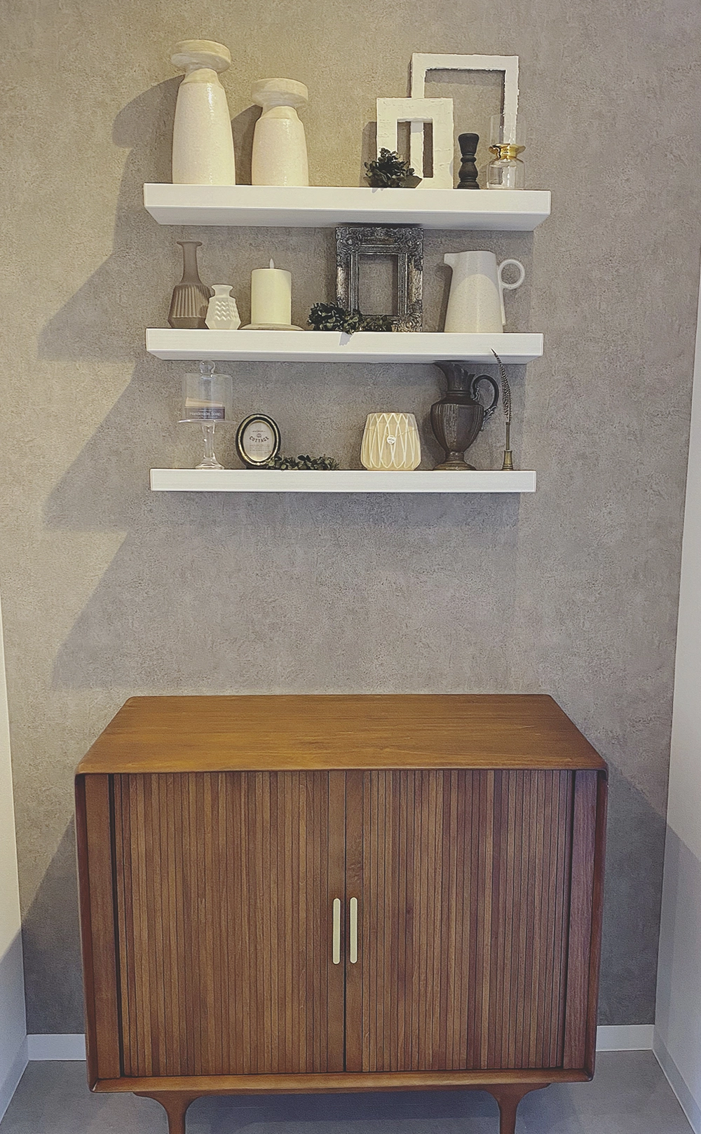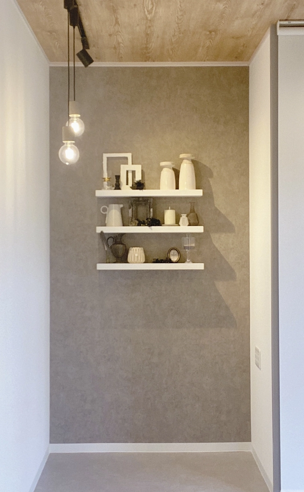保険会社の受付を、雑貨ショップのような空間へとフルリノベーション。白とグレージュを基調に、木の質感と陰影のある照明が、静かな温度感を生み出します。ディスプレイには一点物のヴィンテージや質感の異なる雑貨を織り交ぜ、量産ではない“選び抜かれた余白”を演出。照明・色彩・素材・ディスプレイまで、すべてをトータルでコーディネート。主婦層の感性に響く、やわらかさと洗練を両立した空間は、オフィスの概念を静かに更新します。ブランドの世界観を伝える“ファーストシーン”としての、新しいオフィスの新しいカタチです。